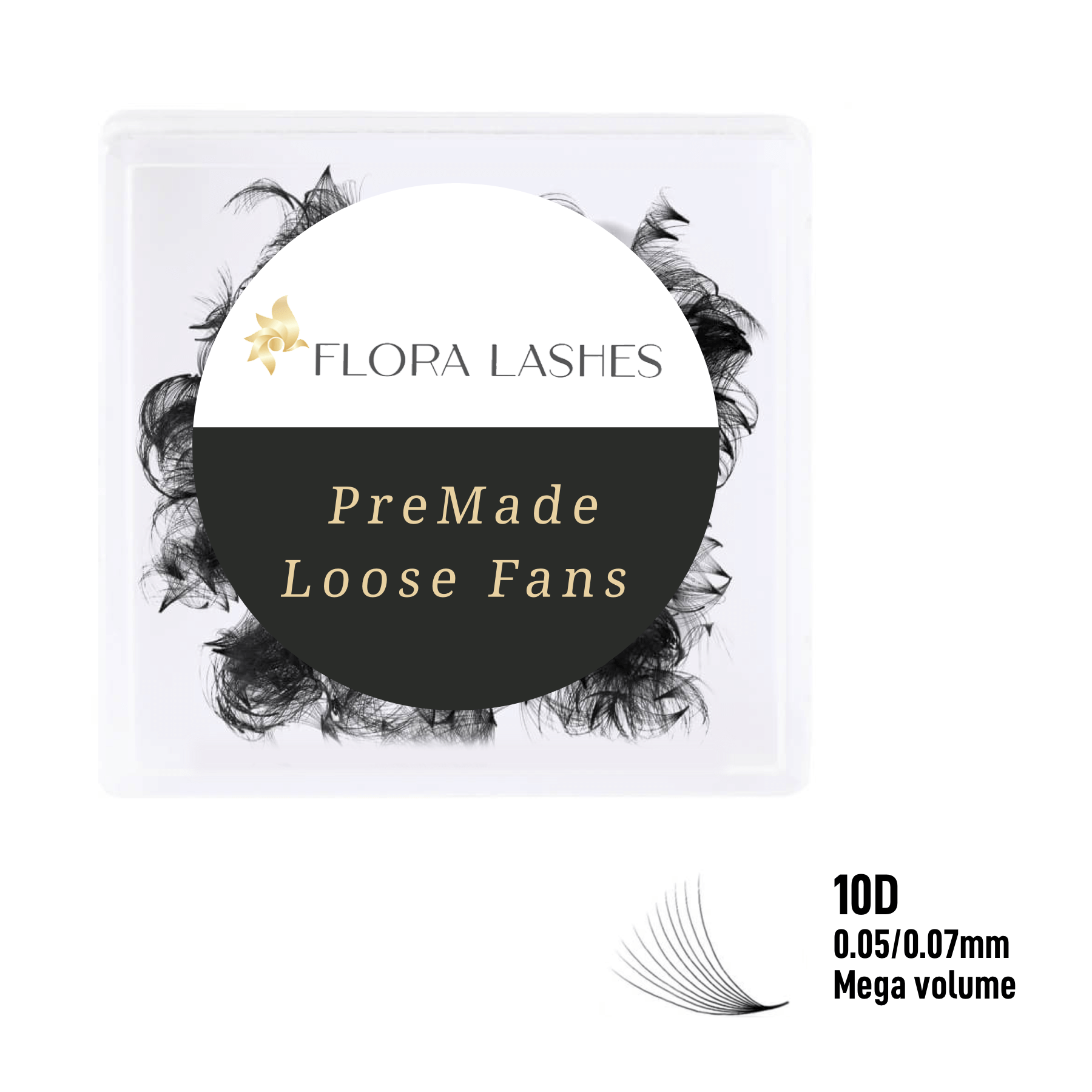 FLOARLASHES 10D ProMade Loose Fans are 100% hand made, made from top quality Korean PBT totally cruelty free. The final product is soft, black and flexible, not stiff, plastic looking lashes. Perfect for new lash artists.